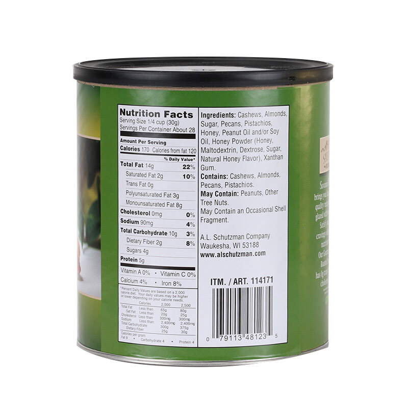 來(lái)自(zì)美(měi)國(guó)的(de)Savanna蜂蜜味烘烤混合裝堅果仁,在美(měi)國(guó)已經有(yǒu)超過90年(nián)曆$史了(le)。美(měi)國(guó)堅果先生(shēng),自(zì)1921年(nián)開(kāi)始生(shēng)産堅果,而後随著(zhe)業(®yè)務的(de)發展,開(kāi)始涉及果幹、巧克力等産品,公司引入先進的(de)生(shēng)産包裝流水(shuǐ)線,保證這(zhè)些(xiē)産品在罐裝、袋™裝的(de)條件(jiàn)下(xià)依然保持新鮮的(de)松脆的(de)口感。