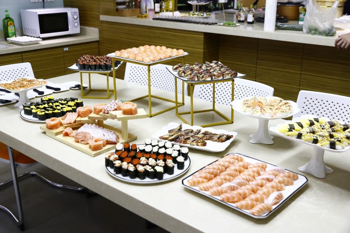久違的(de)下(xià)午茶,企管中心的(de)小(xiǎo)姐(jiě)姐(jiě)們請(qǐng)來(lái)了(le)壽司團隊現(xiàn)場(chǎn∏g)制(zhì)作(zuò)新鮮美(měi)味的(de)壽司刺身(shēn),